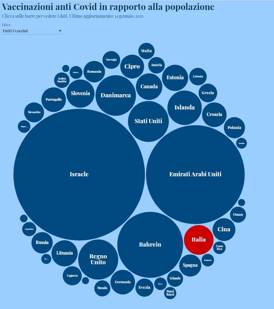 Ученые из итальянского Национального института ядерной физики разработали и запустили онлайн-платформу, которая отображает темпы вакцинации от Covid-19 в разных странах.