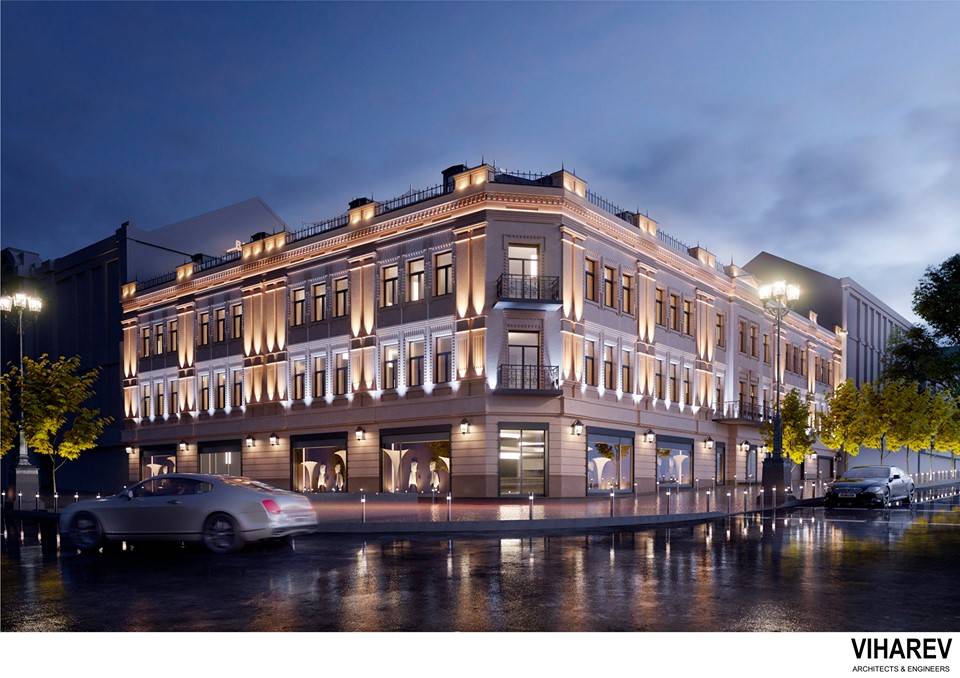 Архитектурное бюро Viharev представило проект реставрации здания бывшего Центрального гастронома на Крещатике в Киеве. Проект уже согласовали в градостроительном совете Киева, сообщили в бюро.