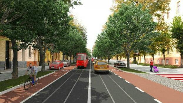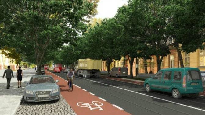 В результате выиграл проект, в котором предлагается сузить полотно улицы для велодорожек и расширить тротуары. А между деревьями, которые являются неотъемлемой частью улицы, расположат паркоместа.