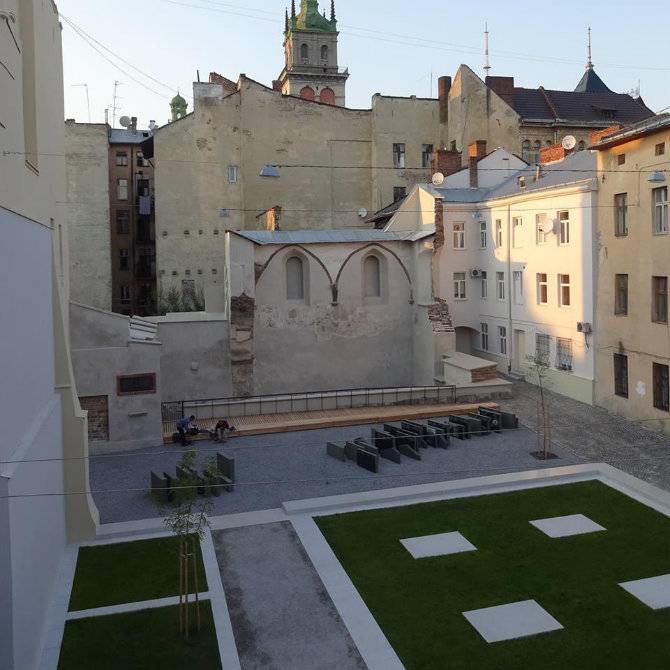 Также в прошлом году во Львове открыли обновленное Пространство синагог. Здесь сохранена часть готической структуры старой синагоги «Золотая роза», взорванной нацистами. Этот район в самом сердце наследия ЮНЕСКО очень долго выглядел страшно. Там был забор, строительный мусор, росли деревья.