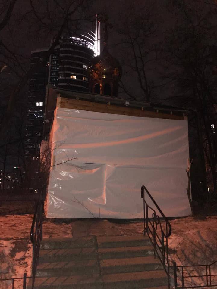В Киеве на Печерске начали демонтировать незаконно установленную МАФ-церковь, пишут местные жители в Facebook.