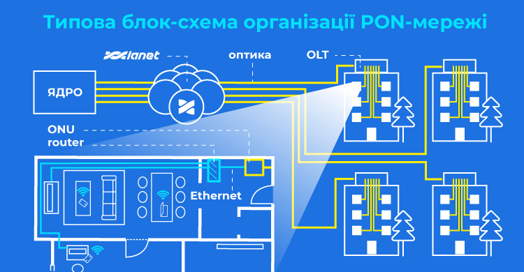 Технология PON (passive optical network), или пассивная сеть, стала особенно популярной после начала отключений электроснабжения в Киеве.