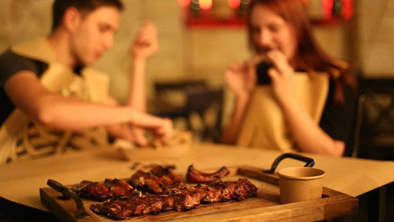 «Согласно нашей концепции, мы подаем еду без тарелок и приборов. Накрываем стол специальной бумажной скатертью, где официанты рисуют тарелки, свечи, цветы, словом, все, что вы захотите. Бывало, что нас просили нарисовать редких покемонов. Ребра и дополнения мы кладем на стол. Каждый гость получает специальные »слюнявчики-нагрудники", - рассказывает менеджер Алена.
