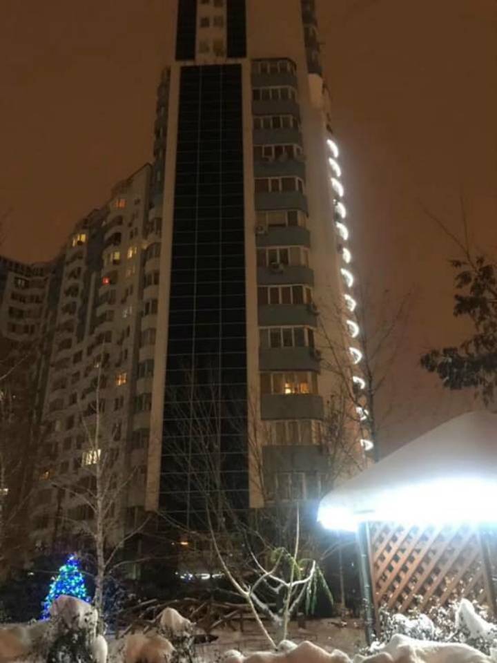 На южной части фасада здания по адресу ул. Николая Бажана, 16 разместили несколько десятков солнечных панелей общей мощностью 30 кВт. Работы по установке проводит ОСМД «Оберег на Позняках», которое управляет этим домом.