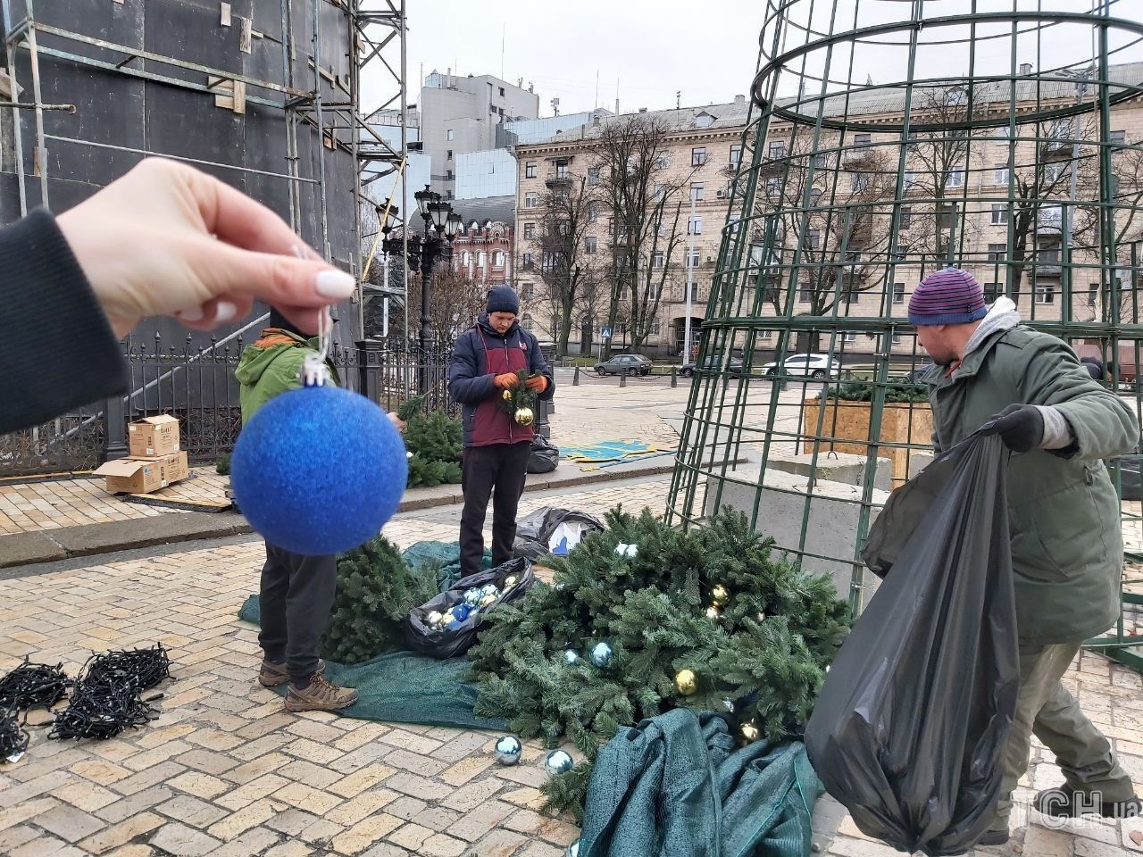 На Софийской площади демонтируют елку. Украшения продадут и отправят деньги ВСУ