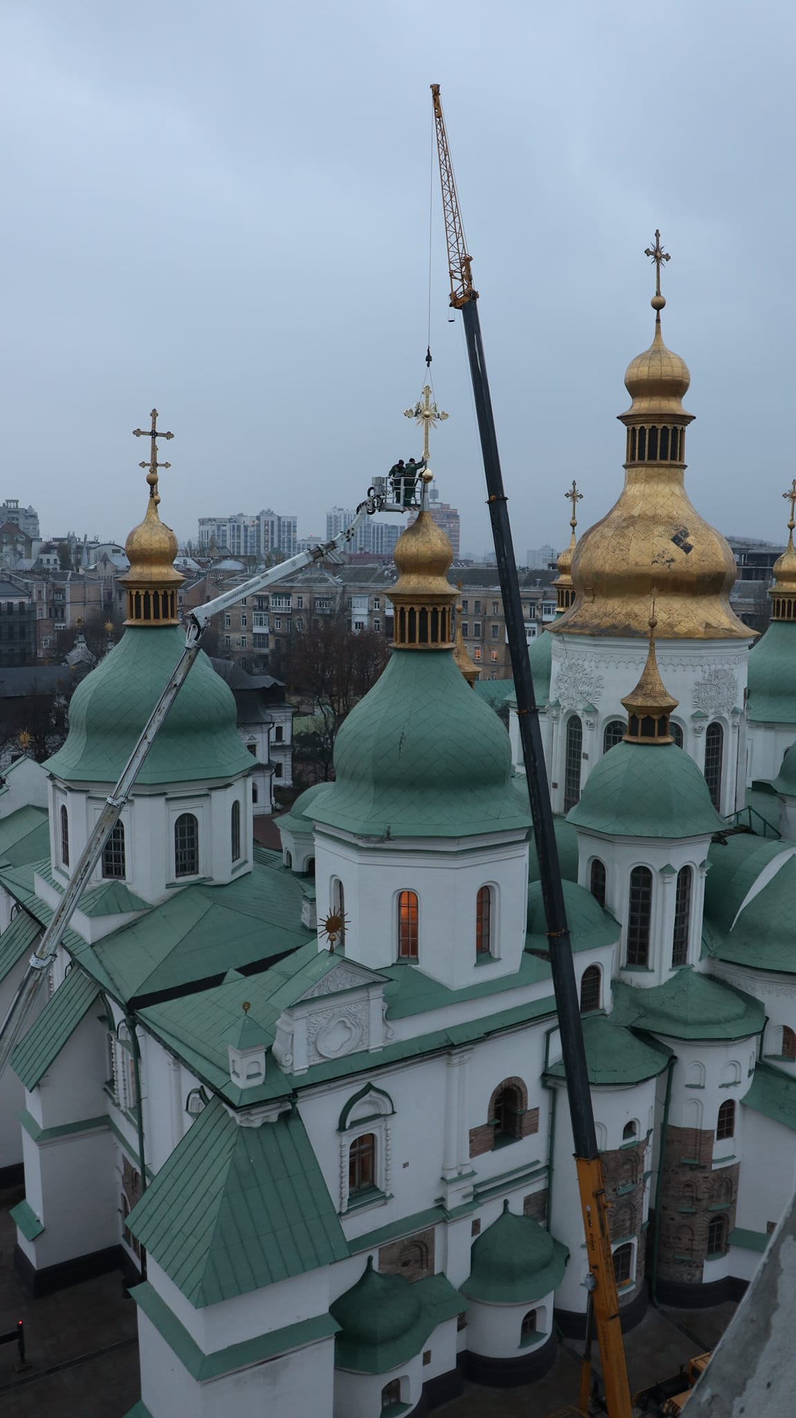 На Софийском соборе восстановили упавший незадолго до вторжения крест