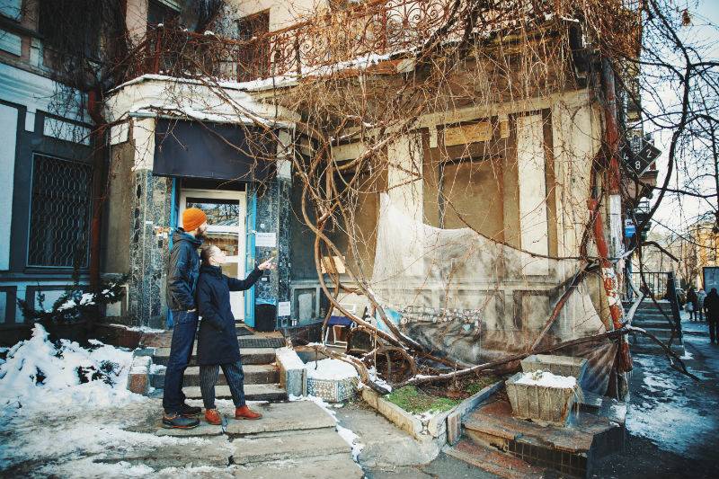 “Это помещение было пустым и заброшенным, его давно не сдавали в аренду. Но мы таки уговорили владельца встретиться с нами”, — говорит Катерина. В результате ребята таки заполучили желанную комнату площадью 49 кв. м. на первом этаже старинного особняка. Но она была в плачевном состоянии. Там даже не было потолка, лишь старые деревянные балки.