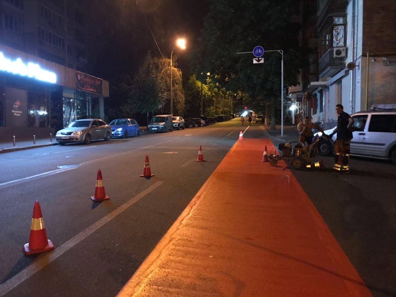 На улице Олеся Гончара в Шевченковском районе Киева появилась новая велодорожка.
