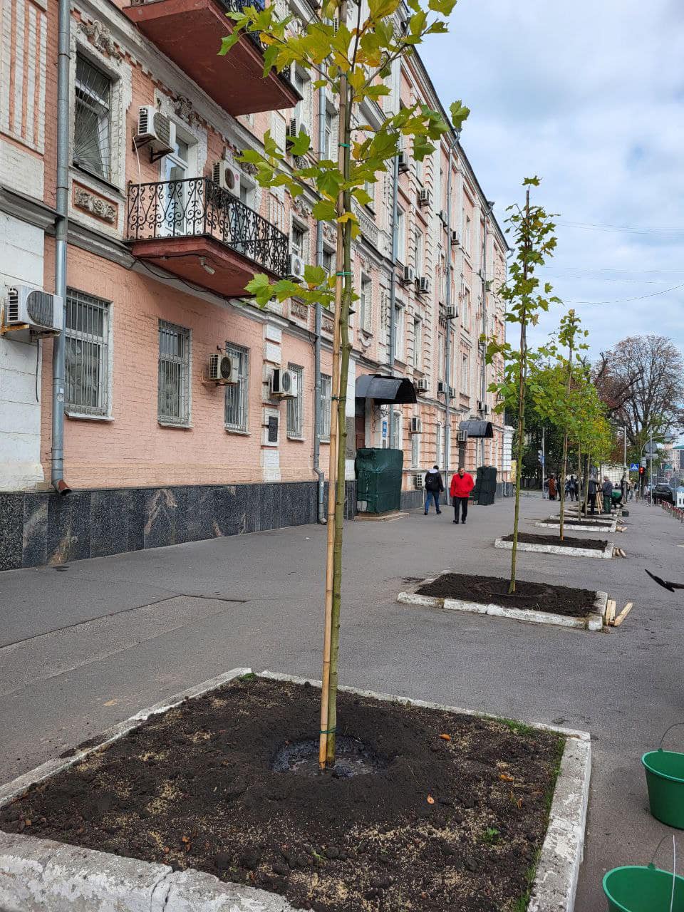 На улице Владимирской высадили десятки платанов в честь Дня защитников и защитниц Украины.