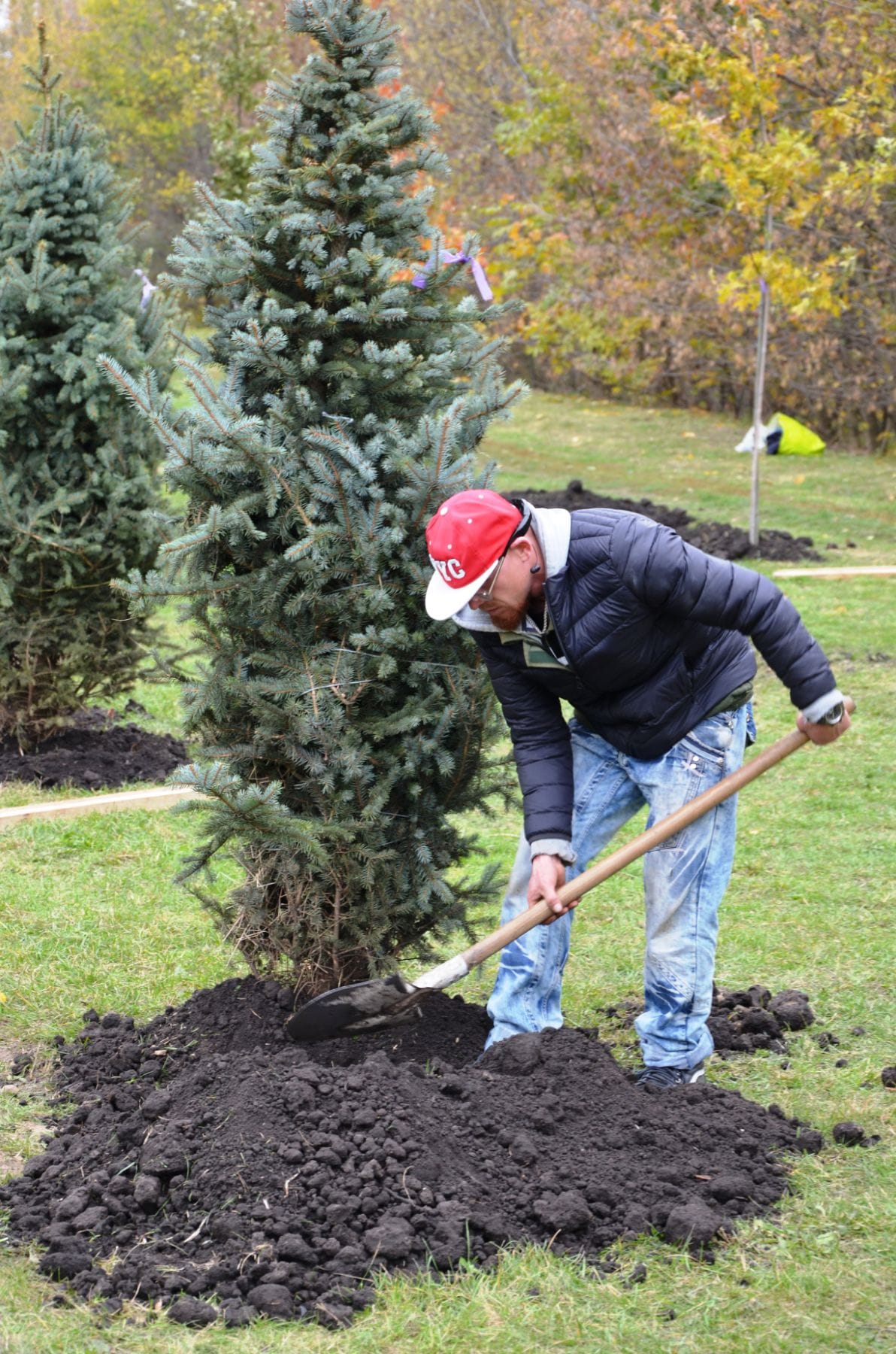 Возле мурала, посвященного Роману, высадили 7 дубов, 15 елей и 15 берез.