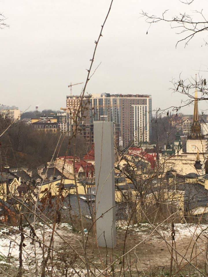 В Киеве на Замковой горе появился монолит. Такие же скульптуры были обнаружены в разных уголках планеты. Фотографиями поделился киевлянин Юрий Романенко.
