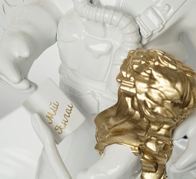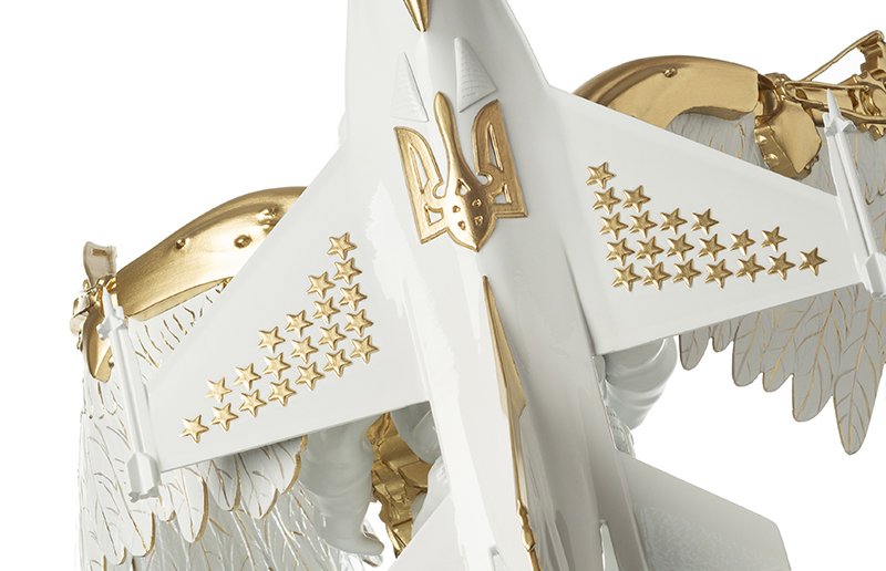 Проект монумента создала дизайнер Оксана Сарапий. Она предлагает установить 15-метровую белую скульптуру лётчика с механическими крыльями. Рядом с ним – девочка, которая протягивает пилоту лист с надписью «Мой ангел».