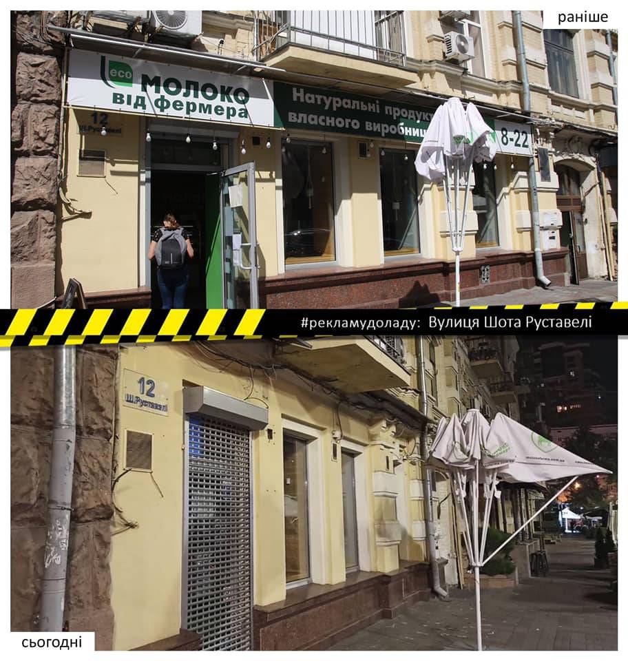 С фасадов домов на Печерске убрали рекламные вывески: фото