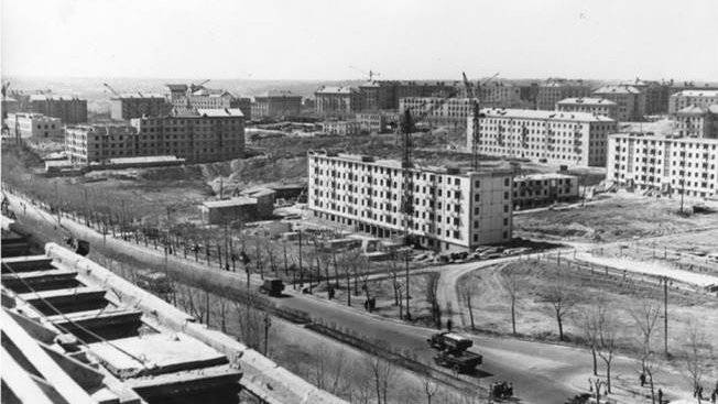 Советские микрорайоны появились в середине 50-х, когда началось послевоенное восстановление городов и люди массово приезжали из сел. Сначала все ютились в коммуналках и бараках, а позже начали строить жилые дома с персональными квартирами, в которых были свои ванны, кухни, санузлы и балконы.