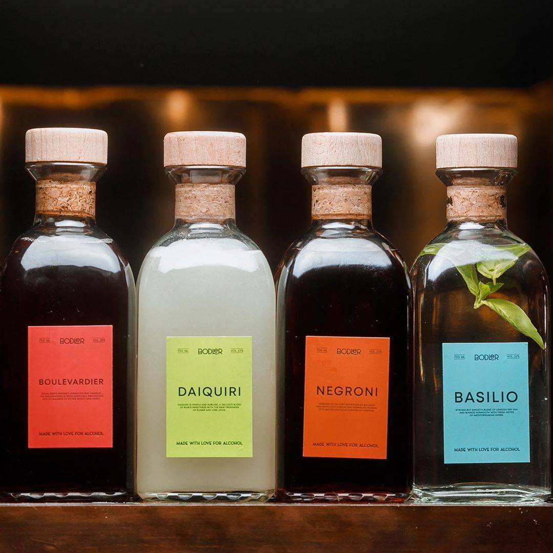 Сейчас можно заказать классические коктейли Negroni, Boulevardier и Daiquiri, а также авторский смешанный напиток Basilio, который выдерживают на листьях базилика. Коктейли доставляют в стеклянных бутылках объемом 700 миллилитров (6 порций напитка), и дополнительно килограмм льда в кубиках в подарок.