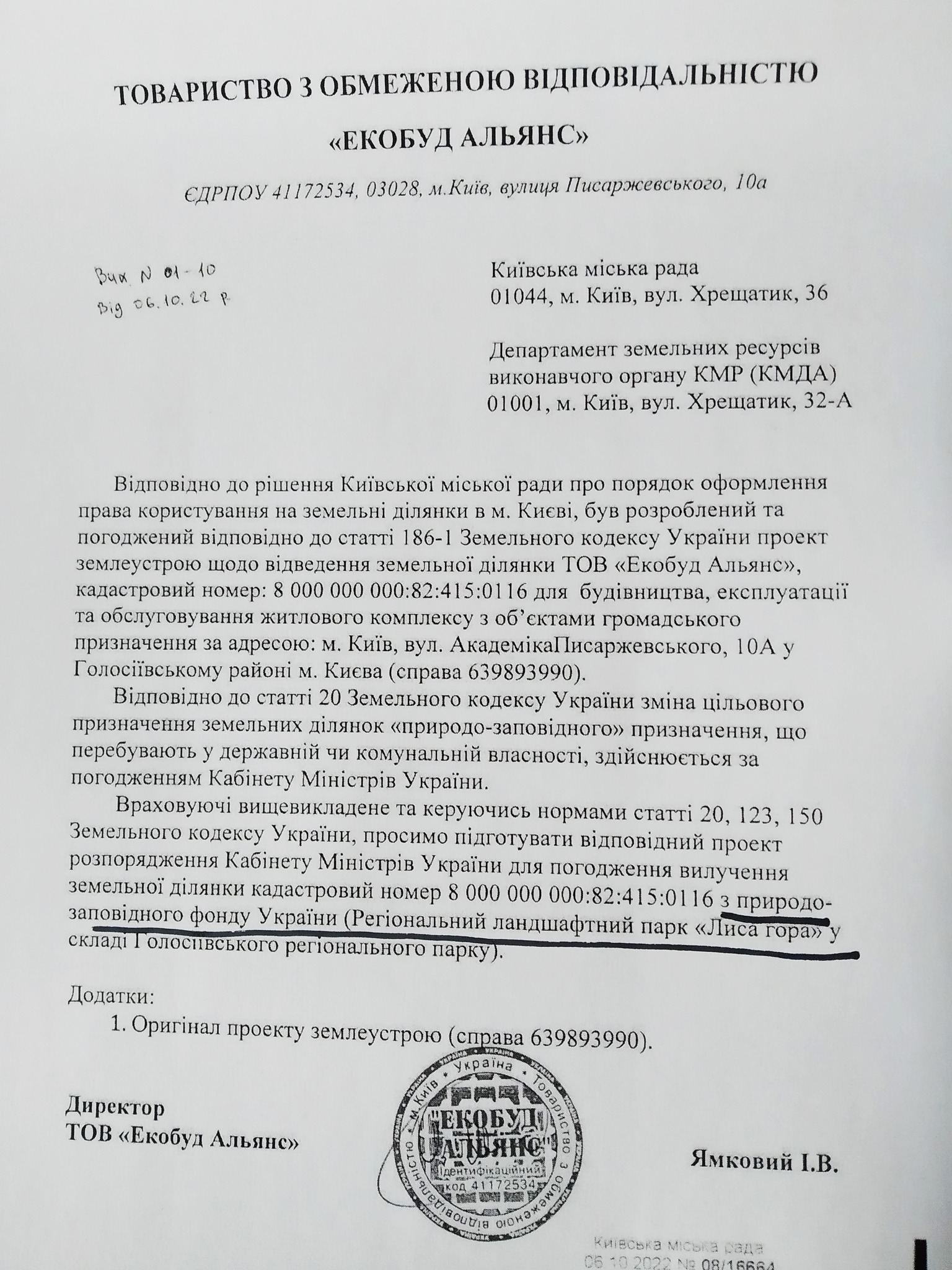 Кроме того, по его словам, еще в октябре 2022 года некоторые киевские застройщики обращались в Киевсовет с предложением снять заповедный статус с «Лысой горы» и начать там строительство. Такое предложение предоставлял ООО «Экобудальянс».