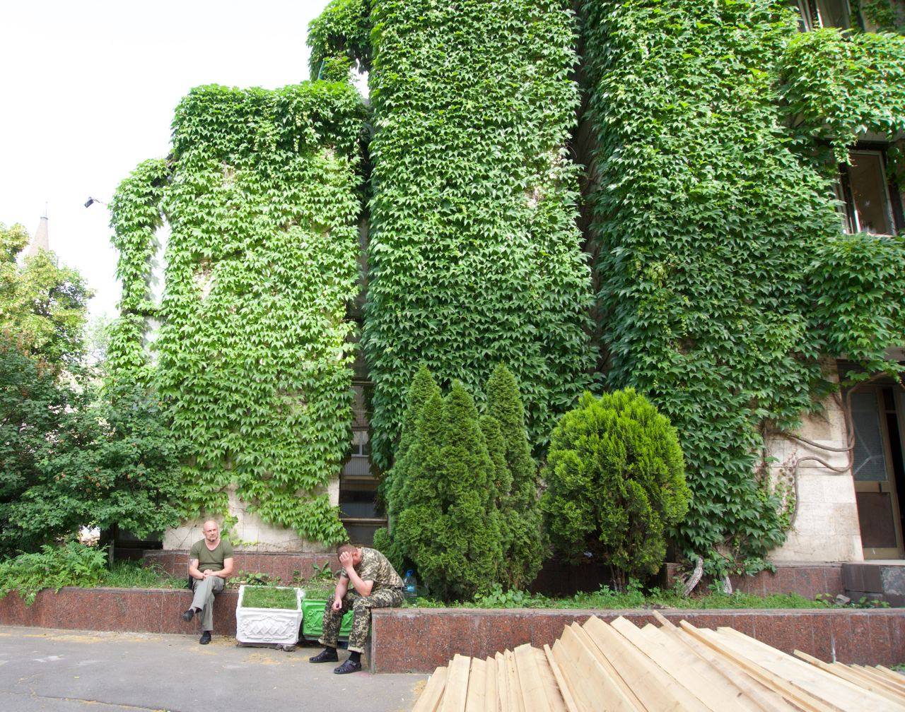 Девичий виноград, который обвивал здание «Квітів України» на Сечевых Стрельцов, 49, срезали, сообщают активисты сообщества «Зберегти Квіти України». .