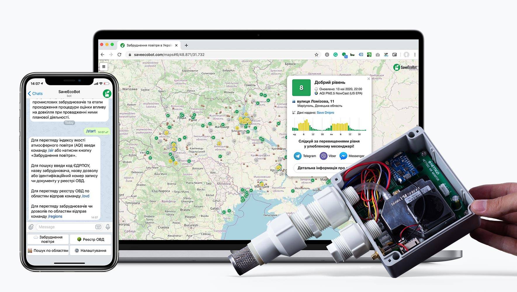 Мы начали разрабатывать недорогие станции мониторинга для индикативных измерений качества воздуха для общественности. Человек может установить у себя за окном станцию и стать частью большой сети. Теперь можно в реальном времени узнать о качестве воздуха. Наша философия была в том, чтобы каждый смог предупредить опасность от загрязнения. Наш бот работает уже в 15 странах мира в категории воздуха, его добавили больше 1,5 млн человек, а в Украине есть около 400 тысяч активных пользователей.