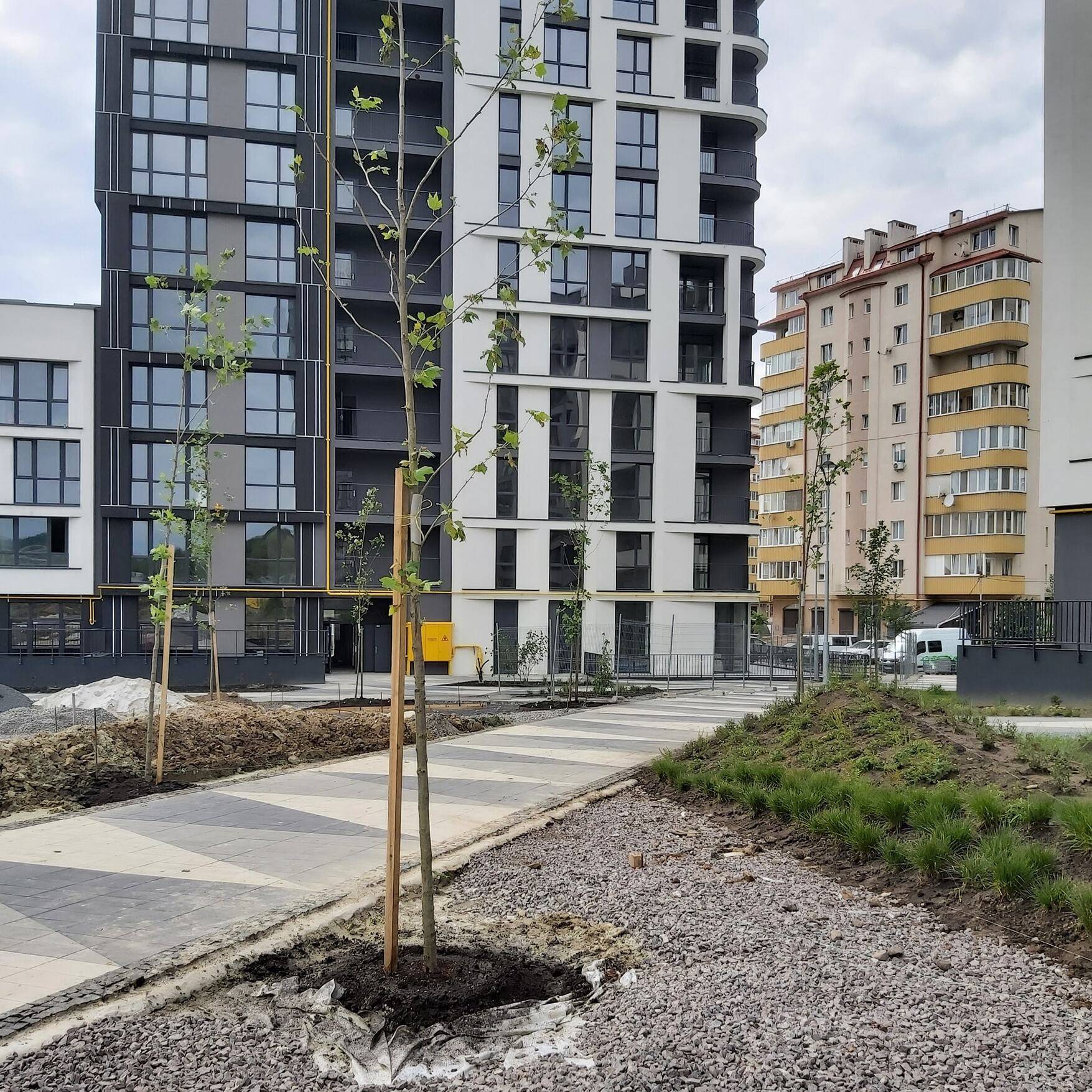 Фото. Жители многоэтажки во Львове собственными силами обустроили оригинальный сад во дворе