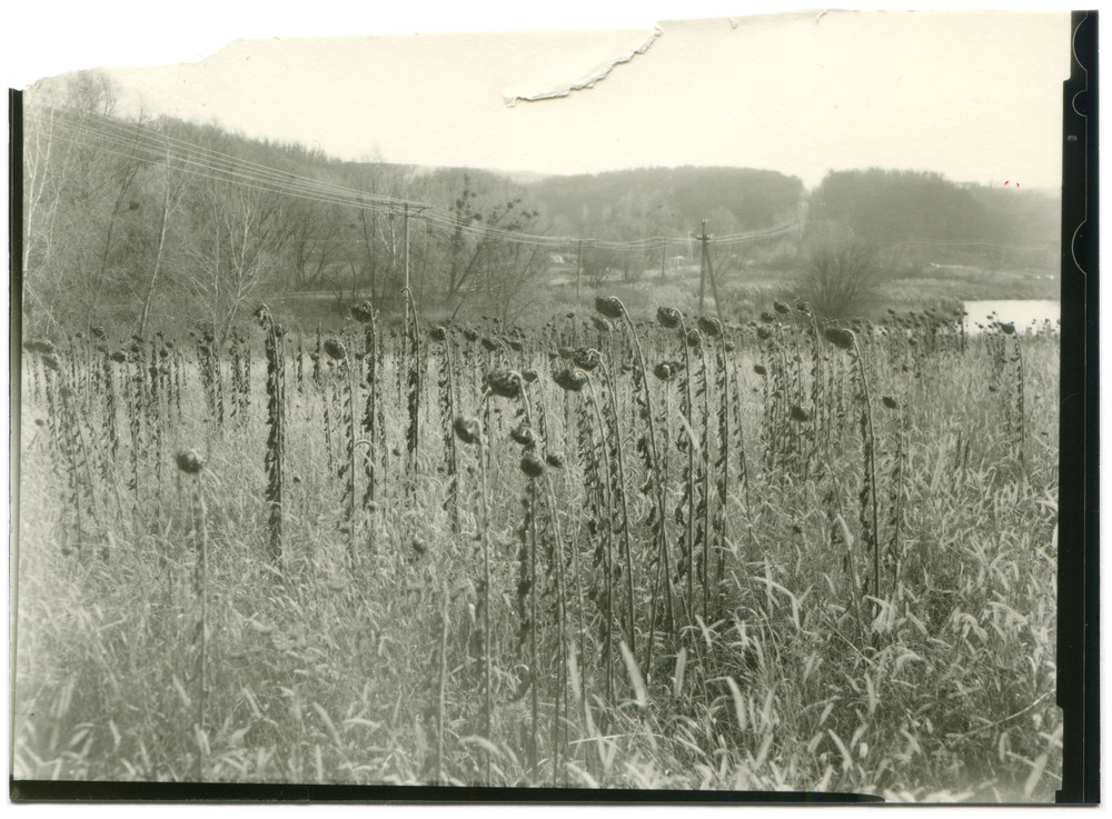 «Я использовал закрепитель снова и снова, пока он не истощался. Он отказывался полностью фиксировать изображение и на следующий день покрывал фотобумагу коричневыми пятнами. Этот истощенный фиксаж стал для меня визуальной аллегорией нашего времени — запятнанной кровью украинской землей», — рассказывает фотограф.