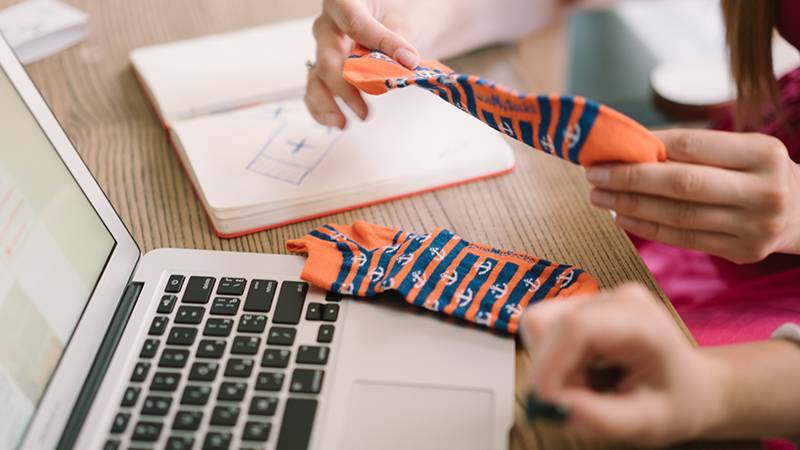 Ребята начали экспериментировать с вариантами стиля будущего продукта. Подсмотрев европейскую манеру ношения носков, остановились на концепции “ярких носков для яркой жизни”. Стало понятно, что дизайн моделей надо разрабатывать самостоятельно, а производственную часть отдать в руки опытных подрядчиков.