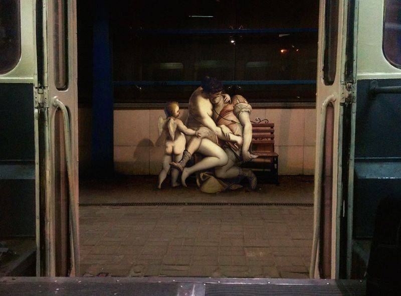 Дальше был Давид Караваджо - тоже поместил его в переход. Условно это такой себе продавец, который собирает то, что осталось к концу трудового дня - знакомая картина.