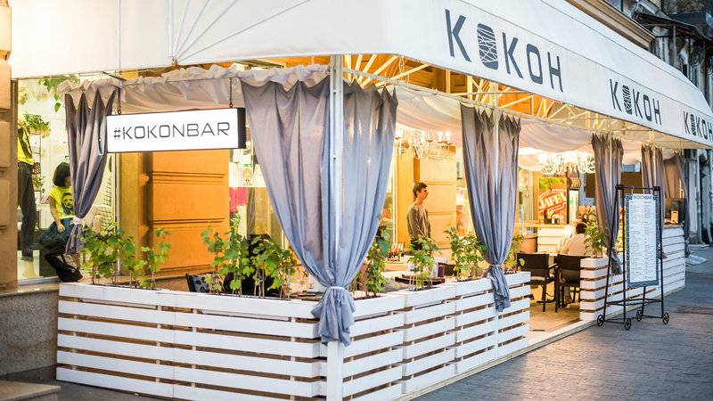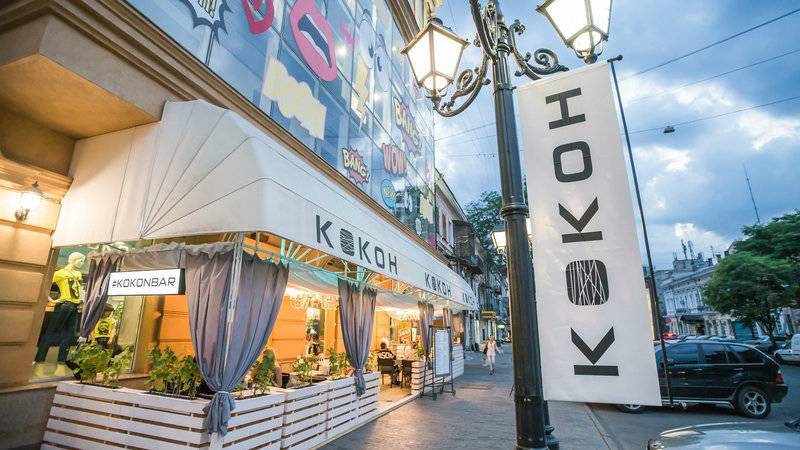Kokonbar оформлен в индустриальном стиле с элементами лофта. С шестого этажа открывается отличный вид на центр Одессы, а летом здесь работает просторная терраса.