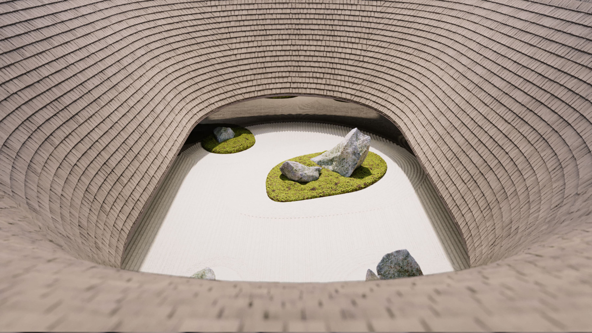 В центральной части внутреннего двора отеля планируется разместить подвесной бассейн, окруженный бордюром из камней.