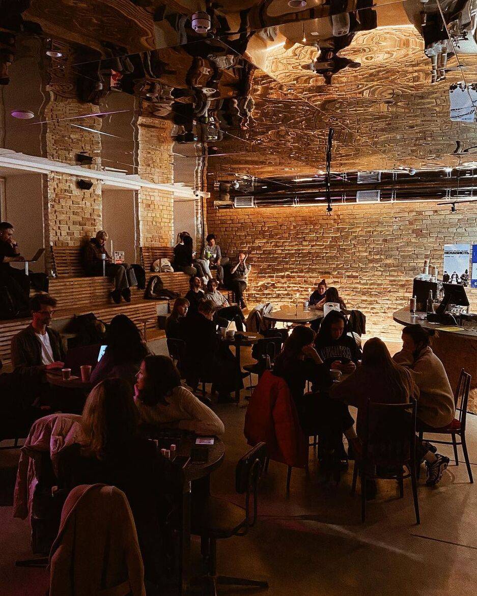 В заведении подают кофе, напитки, блюда и десерты. Также в пространстве проводят киновечера. Сейчас заведение работает с соблюдением ограничений, введенных в Киеве: внутри кофейни принимают посетителей с зеленым сертификатом о вакцинации, отрицательным ПЦР-тестом на COVID-19 или сертификатом о выздоровлении. Те, у кого нет этих документов, могут взять напитки и блюда с собой.
