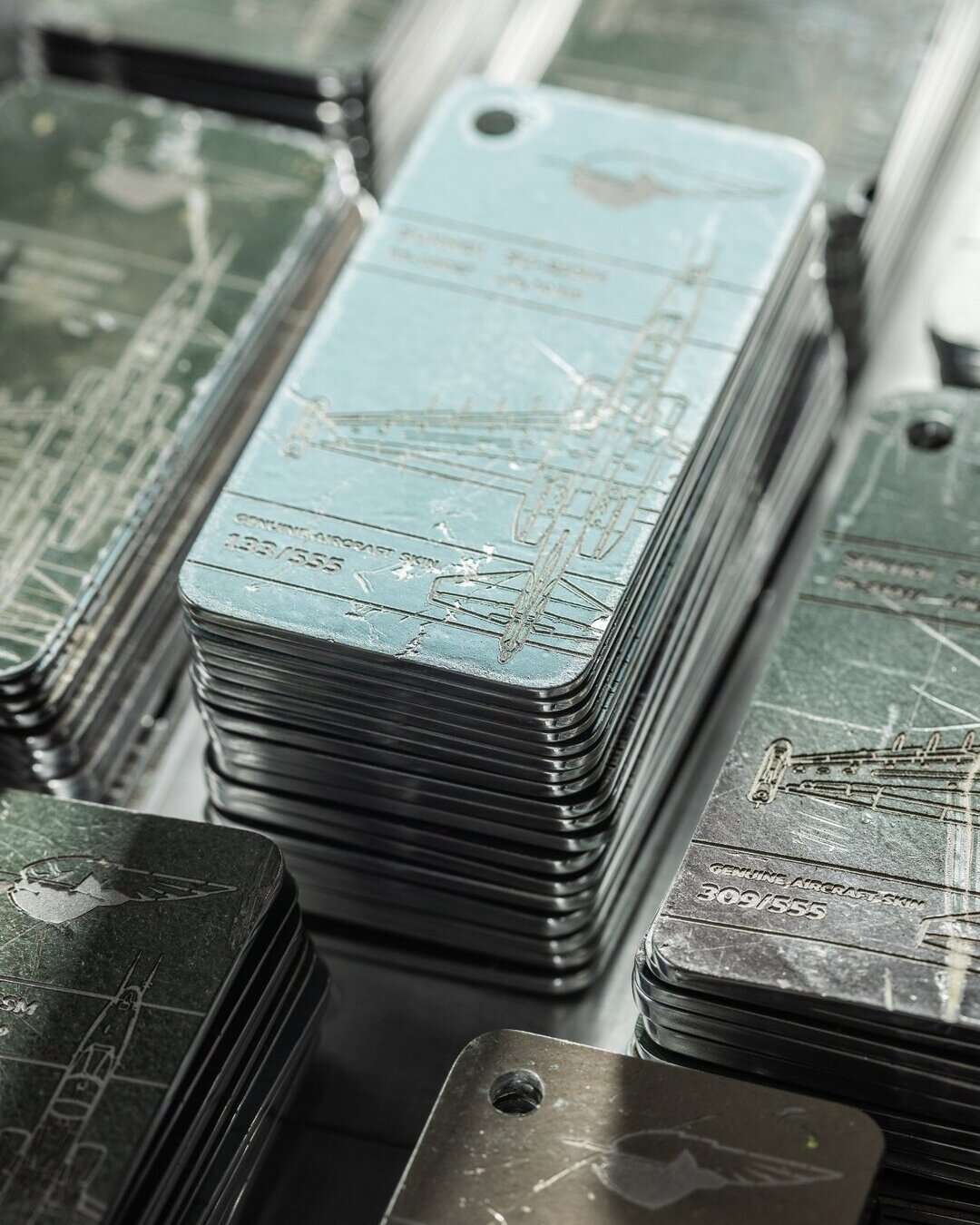 При создании брелков мастера сохранили оригинальные цвета материала и надписи. Волонтеры создают два вида брелоков – стандартные и премиум. Премиум-версия создана из фрагмента, имеющего серийный номер самолета или звезду.