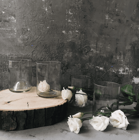 У ресайклинг бренда винных бутылок Resize горячая цена на все товары из прозрачных бутылок.Плавленные винные бутылки-тарелки или на набор стаканов со светлых винных бутылок можно приобрести со скидкой -15%.