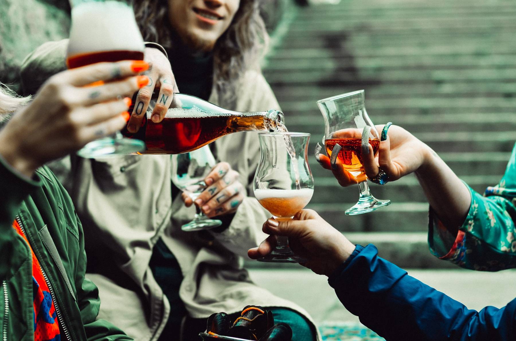 Из напитков предлагают игристое белое и розовое Mushlya, белое и красное вино Mushlya, глинтвейн, розовый и белый вермут Mushlya, пиво Mushlya на разлив.