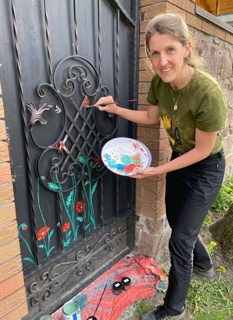 Иванка Сёлковская приехала в Бучу из Торонто впервые. Она начала разрисовывать заборы и калитки цветами вокруг следов от пуль, оставшихся после русских оккупантов.