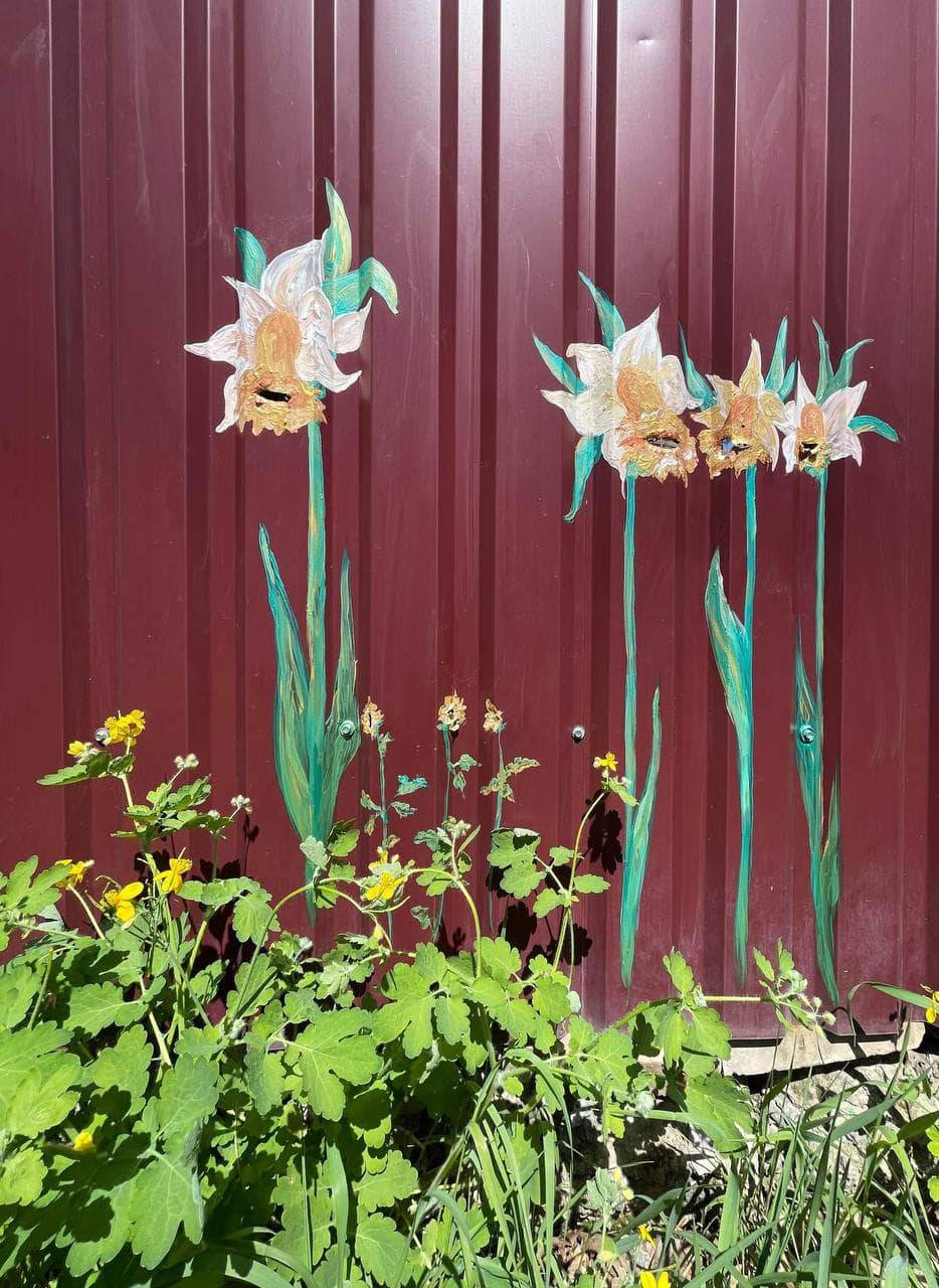 Художница из Канады расписывает цветами расстрелянные заборы в Буче, сообщает Бучанский городской совет.