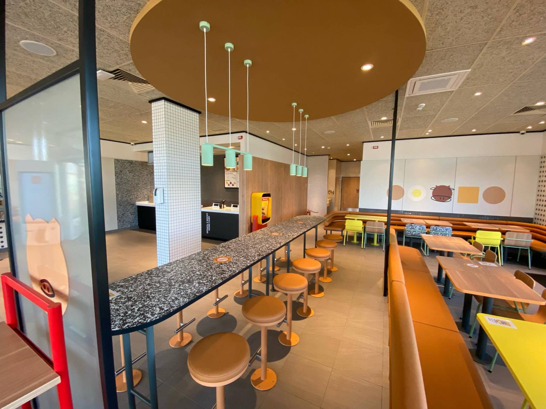В заведении обустроили две линии МакДрайва с диджитал-мониторами и первую роботизированную станцию напитков – теперь напитки наливаются без привлечения работников к процессу.