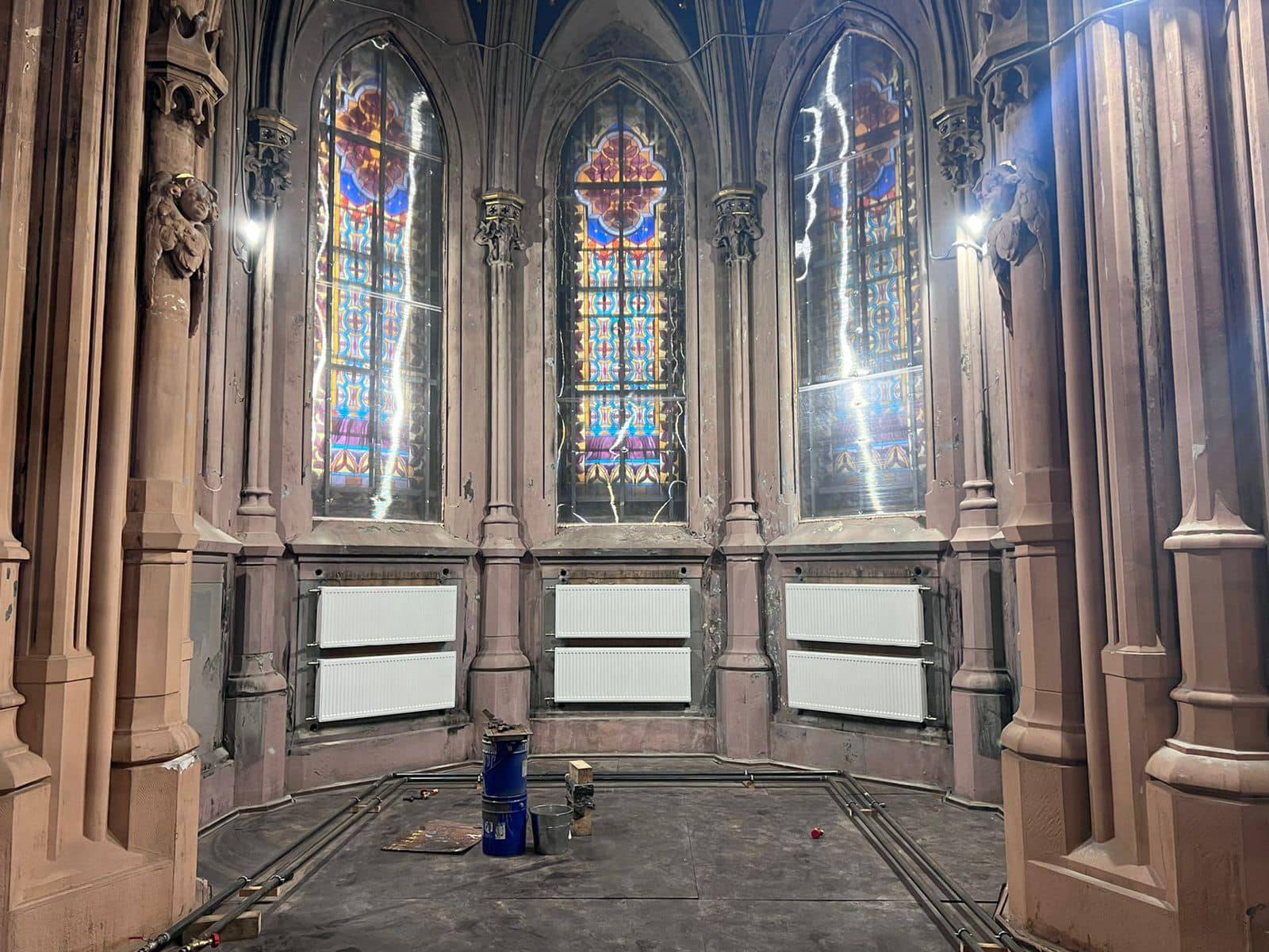 В костеле очистили помещение от сажи, провели работы по укреплению оконных конструкций, восстановили пол, отремонтировали систему отопления, электроснабжения и освещения. Также восстановили систему пожаротушения.
