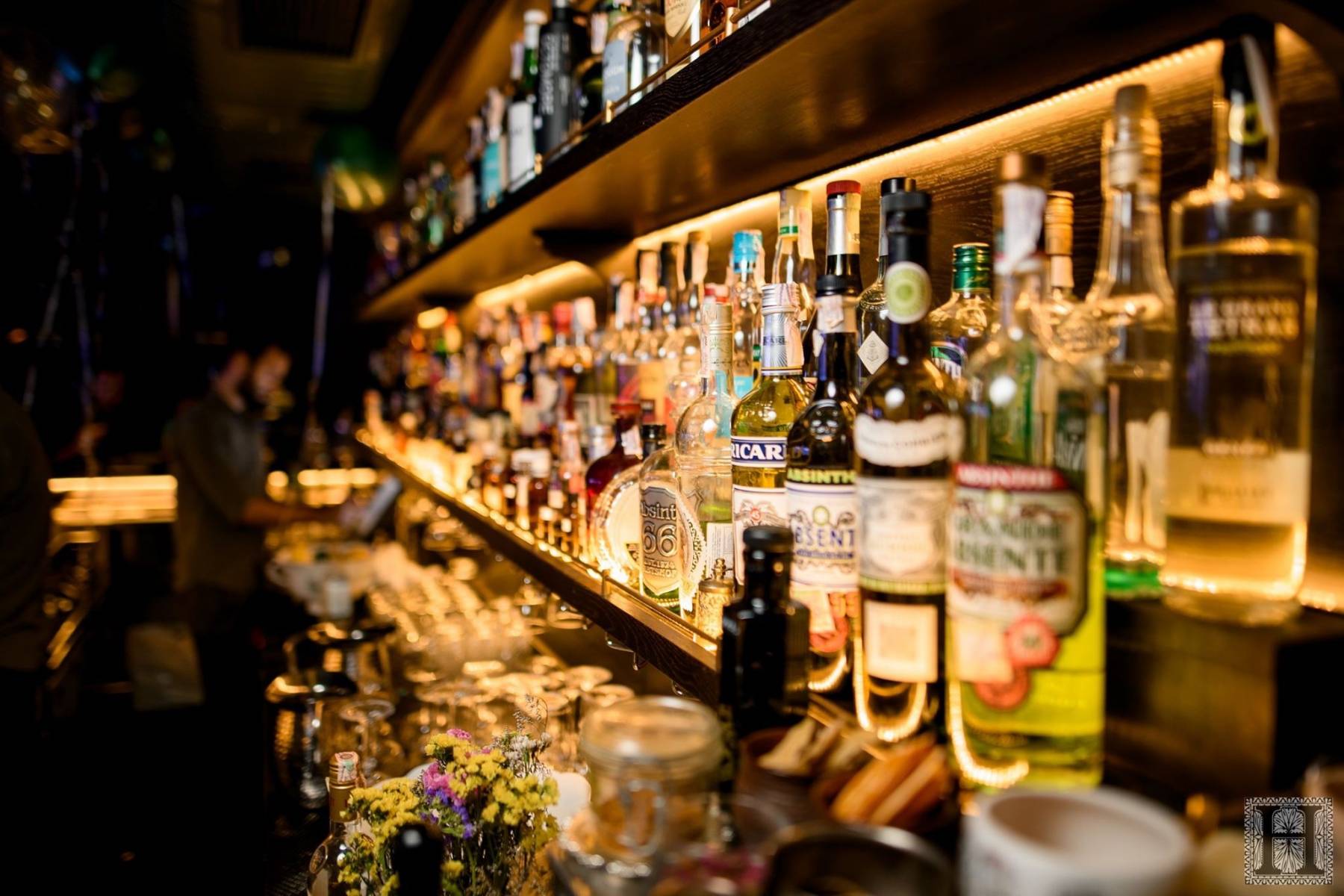 В баре можно заказать крепкий алкоголь, а также около 30 коктейлей. Ассортимент постоянно обновляют. В частности, в заведении предлагают коктейли H & H Negroni на джине Hendrick's и Campari, выдержанном в пчелином воске, Millionaire Cup на темном роме, абрикосовом ликере и бобах тонка, а также Do not Think About Feijoa с джином, сиропом фалернум и сычуаньским перцем. Цены — от 168 до 208 грн.