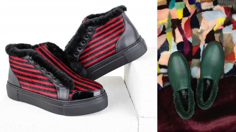 Здесь можно найти утепленные кеды из итальянской кожи и велюра, с шерстяной или меховой подкладкой, украшенные также натуральным мехом.