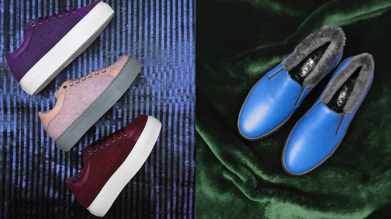К одесскому бренду L.A.P.T.I. традиционно можно идти за зимними слипонами на меху. Есть мужские и женские. Их шьют из итальянской кожи или велюра в самых разных цветах – синем, зеленом, винном, черном, сером, а еще – в бордовую или белую полоску. Для любителей поярче есть модель, покрытая разноцветным мехом норки. Ее создали в коллаборации с дизайнером Ириной Мусатовой, и количество лимитировано: есть лишь 15 пар.
