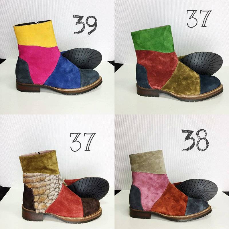 Еще один бренд, который любит яркие цвета и неожиданные сочетания. В этом сезоне предлагают полуботинки из разноцветных лоскутов замши, внутри – шерсть.