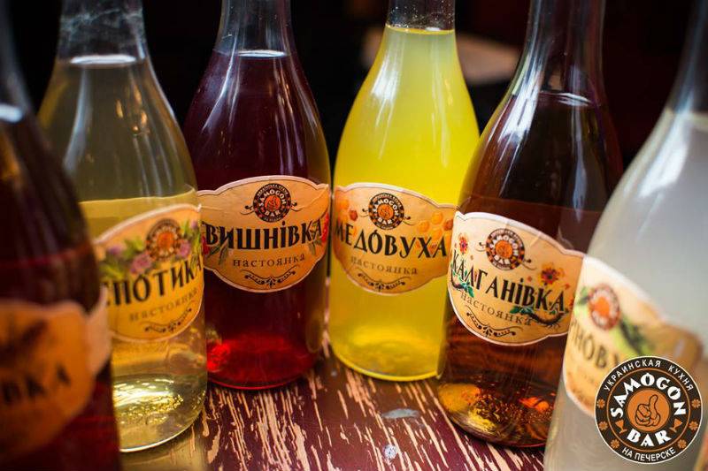 После успешного открытия первого Samogon Bar на Подоле владельцы запустили еще три заведения в других районах. Каждое из них отличается тематикой (Подол – рыбные блюда, Печерск – блюда на гриле, Березняки – мангал и мясные блюда, Оболонь – гастрономические изыски в виде блюд из страуса, голубя). Но все эти заведения объединяет обширная барная карта, в которой есть наливки. Среди них особой популярностью пользуются «Вишневка» с добавлением мускатного ореха и ванили, «Смородина» и «Малиновка» (крепость всего 18-20 градусов, поэтому можно смело пробовать несколько разных, чтобы выбрать наливку по своему вкусу). Для тех, кто предпочитает более крепкие напитки, есть классические медовуха, хреновуха и перцовка.
