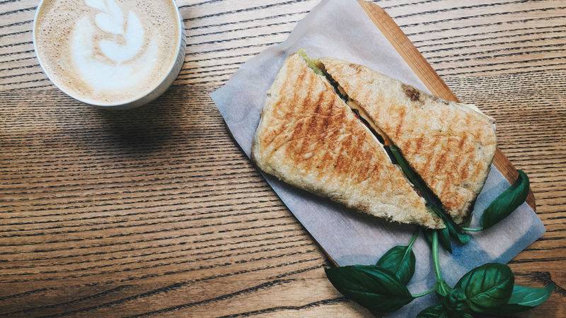 На завтрак подают гранолу или овсяную кашу с фруктами. Еще можно перекусить сэндвичами из цельнозернового бездрожжевого хлеба с прошутто котто, песто и курицей сувид, которые заведению поставляет гастро-кафе “Тарелка “. Заведение сотрудничает с 30-40 кондитерами, поэтому в меню — множество десертов.