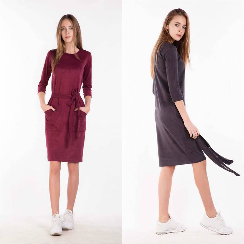 Платье delight - максимально универсальное. Можно носить как с поясом, так и без, а также с любой обувью. Материал: искусственная замша на трикотаже (состав: вискоза/спандекс). Цвета: серый, хаки, бордовый.