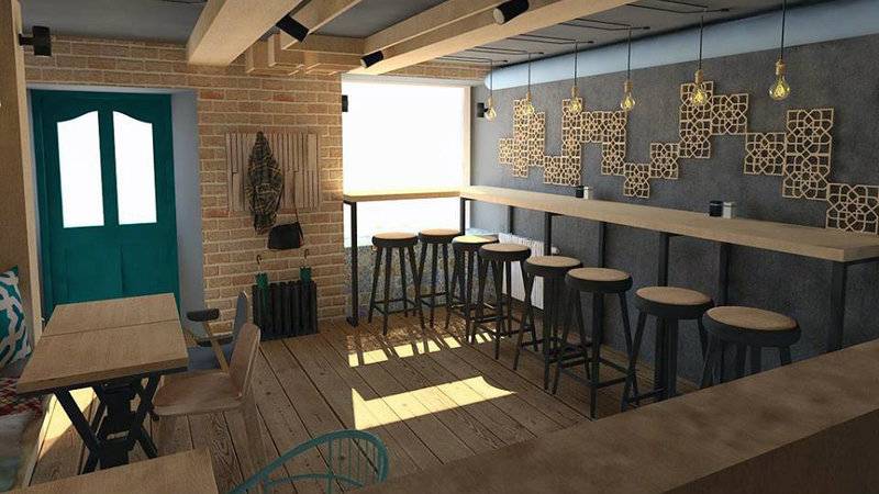 Место довольно маленькое, но вместительное. Здесь есть обычные столики и деревянные сидения, а также барная стойка. Бар отделан традиционной турецкой плиткой.