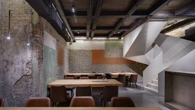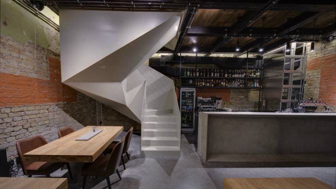 Над интерьером новой Пивной Думы на Крещатике, 10 работали архитектор Слава Балбек и Дарья Овеченко. Это место, по словам владельцев - альтернативный взгляд на пивную культуру. Кирпичные стены в стиле лофт, деревянная отделка потолков, решетки, разделяющие пространство на сектора, длинные столы из дерева и мягкие кресла вдоль них, необычная белая лестница в стиле минимализм.