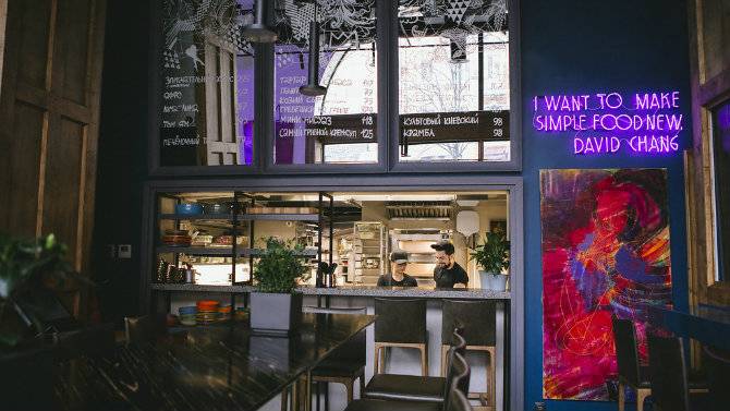 “Жизнь Замечательных Людей” открылся совсем недавно, но там уже трудно забронировать столик. Уютный ресторан с большими окнами и высокими потолками, неоновыми надписями, рисунками на стенах и открытой кухней.