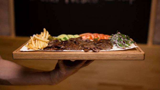 А это место называет себя «кебаб-шоп». Для тех, кто не в курсе: «кебаб» в турецкой кухне означает жареное мясо. А все остальные блюда с приставкой «кебаб» – лишь разновидность блюд, куда это самое жареное мясо добавляется. В этом заведении жареное мясо подают во всевозможных вариациях.Старую добрую шаурму тут тоже именуют дёнером, его здесь два вида: с курицей и говядиной. Если любите экзотику, можете попросить дёнер в черном лаваше. А если хотите плотный перекус, попросите томбик дёнер – жареное мясо вам положат между булочками (tombik на турецком означает «пухлый»).