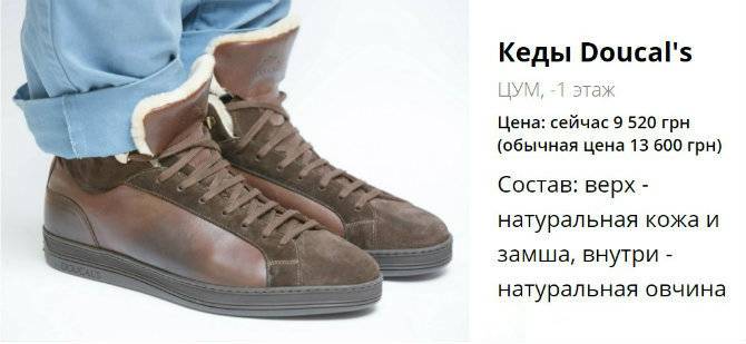 Кеды Doucal's и качественные и одновременно стильные. В производстве используются натуральная кожа и овчина. Подошва резиновая, но без грубого протектора, поэтому на скользких поверхностях стоит быть осмотрительным. Особенной изюминкой бренда Doucal's является то, что это обувь ручной работы.