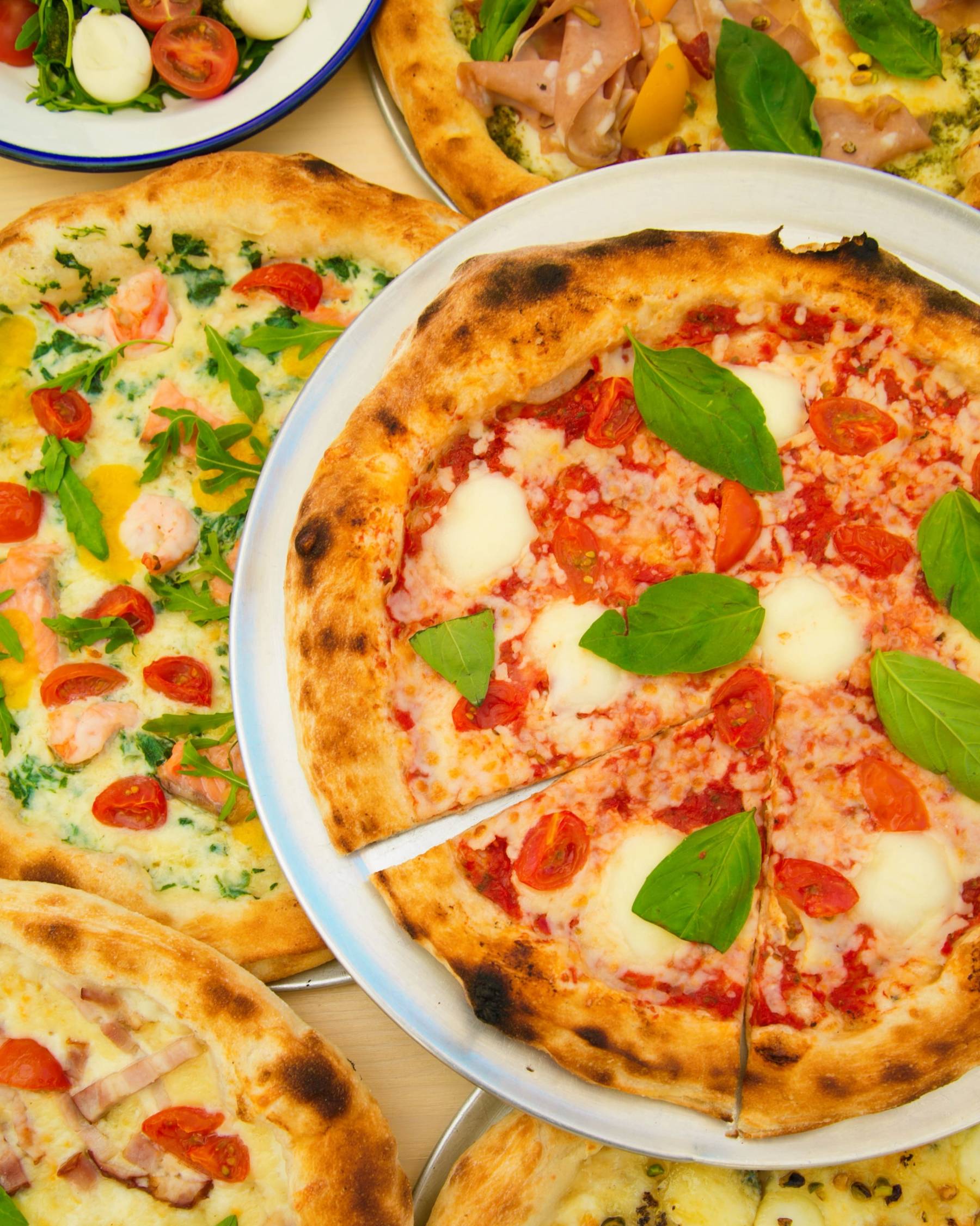 С неаполитанской пиццей, римской пинцей и просекко.Цены: римская пинца с мортаделлой и персиком - 89 грн, пинца Маргарита - 69 грн, неаполитанская пицца с горгонзолой, грушей и трюфельным медом - 129 грн, неаполитанская пицца BBQ - 129 грн.