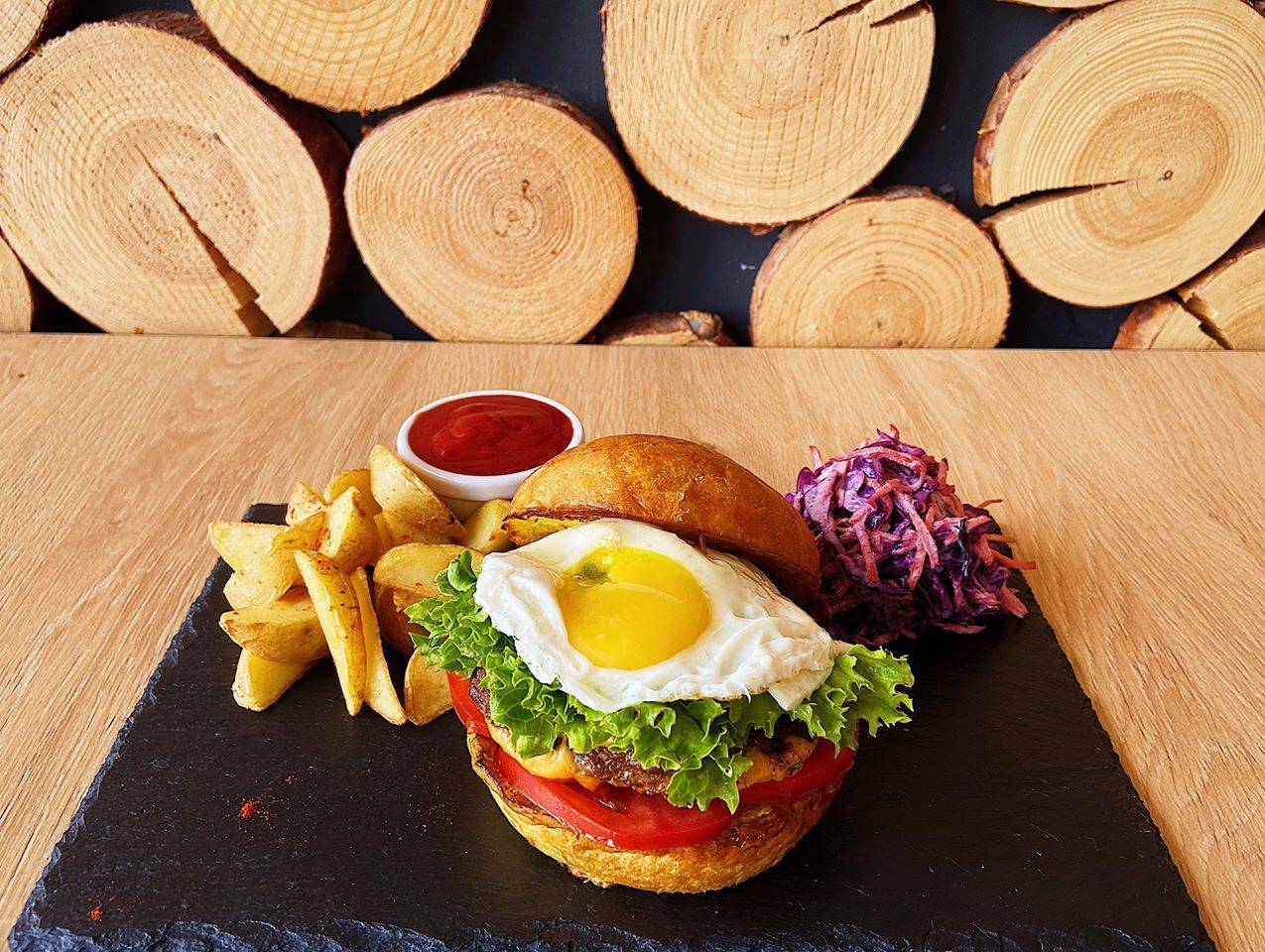 Бургеры стоят от 99 до 129 грн, картофельные дольки — 45 грн, куриные крылышки в соусе — 110 грн, кукуруза гриль — 65 грн, салат коул слоу — 40 грн, бургер меню — 139-159 грн.